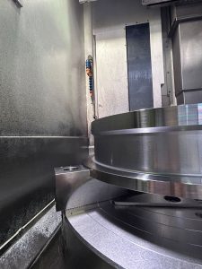 The pictures show that lathe processing for a slightly larger size product (material:S45C, diameter 500mm).
